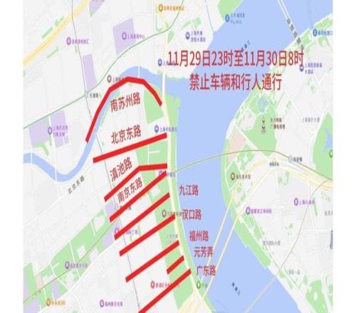 一、11月29日23时至11月30日8时,南苏州路双向(中山东一路—河南中路)、北京东路双向(中山东一路—河南中路)、滇池路双向(中山东一路—江西中路)、天津路(江西中路—河南中路)、南京东路(中山东一路—河南中路)、九江路(中山东一路—河南中路)、汉口路(中山东一路—河南中路)、广东路(中山东一路—河南中路)、福州路(中山东一路—河南中路)、元芳弄(中山东一路—四川中路)禁止车辆和行人通行。