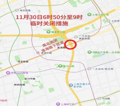 七、11月30日6时50分至9时,南北高架淮海路下匝道实施临时关闭措施。